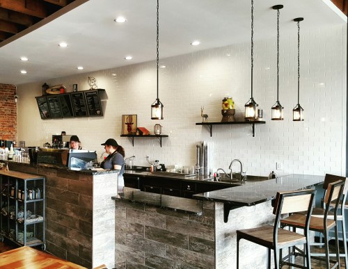 The first thing that strikes you when you walk in the door is that it is a beautiful looking space. There’s exposed brick, acid stained concrete floors, tons of seating including heavy wood tables, high-tops, stools at the bar, and a couple of large comfy couches and chairs. The couches are situated by two large windows in the front of the shop that overlook Main Street that provide a ton of natural light which pours in over the earthy tones of the cafe’s interior. It is a well thought out space offering an environment that invites you to hangout and stay a while. They also have a good Wifi connection making it a great spot for getting some work done or hosting a meetup.